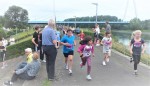 Es war zudem auch nicht so, dass die kleinen Wettkämpfer, nachdem sie ihr Trikot angezogen hatten, sofort zum Start eilten. Vielmehr hatte der Veranstalter dafür gesorgt, dass jeweils vor dem Start der jüngeren Läufer ein "WarmUp", also ein "Aufwärmprogramm", angeboten wurde, das von Sigrid Derek und dem jungen Vereinskollegen Lukas Jagr in vorbildlicher Weise mit den jeweiligen Kindergruppen im Hof der beiden Rudervereine realisiert wurde.