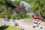 Als Erstes zeigte die Jugendfeuerwehr Dierdorf ihr Können. Sie simulierte eine Einsatzfahrt direkt an den Schlossweiher und richtete eine Wasserentnahme ein. Das Wasser wurde dann wieder in den Weiher befördert. Viele Besucher verfolgten hautnah das Geschehen. Ein Highlight für die Kinder war, dass sie unter Anleitung und Hilfe selbst einmal einen kleineren Schlauch halten und spritzen durften. Stolz und Freude war in die Gesichter geschrieben.