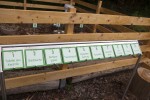 Insgesamt zehn Arten von Müll hat Merle im Wald gesammelt und daraus ihre Ausstellung gemacht. Der präsentierte Müll wurde eingezäunt, eine Info-Tafel erstellt und zu jeder Müllsorte gibt es eine Klapptafel, auf der der Besucher die Dauer des Müllabbaus sehen kann.