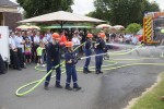 Direkt nach der Einsegnung des Fahrzeuges durch Pfarrer Eickhoff und der offiziellen Schlüsselübergabe konnten die Besucher eine Vorführung der Jugendfeuerwehr verfolgen. Es wurde ein Löschangriff simuliert. Ein Highlight für die anwesenden Kinder war, dass sie selbst den Schlauch einmal halten und spritzen durften. Stolz und Freude war in die Gesichter geschrieben.
