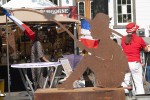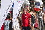 Seit 15 Jahren zuverlässig dabei ist der Freundeskreis Rengsdorf/Saint-Pierre-le-Moûtier mit einem Stand, an dem man sich mit Wein, Cidre oder Wasser erfrischen und ein Schwätzchen halten kann. Dort hielten die Funken Rot-Weiss am Samstagmorgen ihren Stammtisch ab. In den markanten roten Shirts der Funken bedienten auch Bürgermeister Christian Robenek und Thomas Hirsch, der Vorsitzende des Freundeskreises die Gäste. Hirsch berichtet, dass auch während der Pandemie der Kontakt mit den Franzosen frischgehalten wurde, zeitweise virtuell und symbolisch. So wurden Ostereier in den jeweiligen Nationalfarben bemalt, die Rengsdorfer Mitglieder feierten ein Baujolais primeur-Fest und ein Weihnachtsfest, das per zoom übertragen wurde. Fünf bis sechs Veranstaltungen im Jahr werden von der festen Gruppe organisiert, in diesem Jahr wollen sich die Freundeskreise in Freiburg treffen.