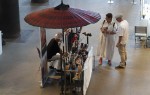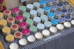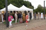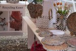 In mehreren Ausführungen konnte man handbemaltes Porzellan, Taschen und Gürtel, Keramikobjekte und Vasen erstehen. Außerdem waren Seifen, Deocreme und Wohlfühlbalsam im Angebot, Briefbeschwerer und Schmuck aus Stein, Buchbindearbeiten, Lichtkunstobjekte mit Metall als „afterwork-art“ und mit Epoxidharz recycelte Objektkunst sowie stimmungsvolle Fotos als Karten und Bilder zu erwerben. In der Mitte der Gießhalle schwebten Claudia Lingens mit pastelligen Farben bemalte großformatige Seidenbilder. Pfiffige Wohnaccessoires gestaltet die Brasilianerin Marcia Gomes Bosse: aus Papier recycelte, sehr individuelle Taschen und Körbe.