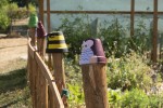 Die Kinder lernten, dass Bienen und Hummeln zur Befruchtung von Obst und Gemüse wichtig sind. Auf dem Gelände stand ein altes Insektenhotel, das wieder neu bestückt wurde. Rund um das Hotel wurde eine Blumenwiese angelegt, damit die Insekten genügend Nahrung haben. Spiel und Spaß sollten nicht zu kurz kommen, so gingen die Kinder in den Wald und sammelten Stöcke. Damit wurde ein Tippi gebaut, rundherum wurden Bohnen gepflanzt und damit entstand ein toller Spielplatz. In diesem trockenen Jahr 2022 war es den Bohnen leider zu trocken. Auch den Kürbissen auf dem Kompost bekommt die Hitze nicht besonders gut. (woti)