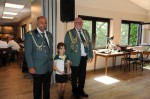 Nach einer kurzen Pause zum Durchatmen war klar, dass es viele Bewerber um die Königswürde geben würde. Ein spannender Wettkampf begann. Der Wettkampf sollte dann aber gar nicht so lange dauern. Bereits mit dem 200. Schuss fiel der Aar von der Stange. Die Schützen waren völlig überrascht, dass es so schnell ging. Die Königswürde errang Patrick Schmidt, der am 9. Juli auch Kaiser wurde. Adjutantin ist Sabine Becker. Nach einer Pause traten die Schützen an und huldigten dem neuen Regenten. Die Krönung wird am Sonntag (21. August) stattfinden. (kkö)