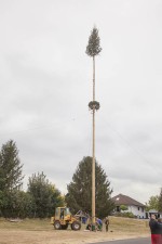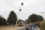 Giershofen. Im Dorf angebrachte Festbänder kündigen seit Freitag die Kärmes in Schowen an. Um 15 Uhr am Samstag traf man sich traditionell am Dorfgemeinschaftshaus, um gemeinsam den Baum aufzustellen, der vorher von den Mitgliedern der Kirmesgesellschaft aus dem Wald geholt und geschmückt wurde. Mit Muskelkraft und technischer Hilfe durch einen Radlader und eine Seilwinde stellten die Männer der Kirmesgesellschaft den Baum in die Senkrechte.