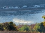 Der Polizeihubschrauber des Landes Rheinland-Pfalz unterstützte die Löscharbeiten mit dem Außenlastbehälter. Das Löschwasser wurde mehrere Male im Rhein aufgenommen und dann über der Einsatzstelle abgeworfen.