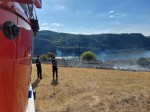 Flächenbrand bei der Burgruine Hammerstein: Mit einigen Schwierigkeiten sahen sich die Feuerwehren der VG Bad Hönningen konfrontiert, als eine 7000 Quadratmeter große Freifläche nahe des Rheinsteig-Wanderwegs am Freitagnachmittag in Brand geriet. Die Löscharbeiten in der steilen Lage gestalteten sich schwierig.