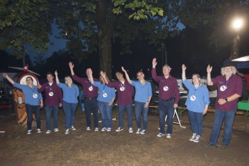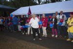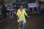 Nachmittags gab es für die Kinder und die Kindertollitäten das Schärjerrennen, bei dem ein vorgegebener Parcours schnellstmöglich zu bewältigen war. Der obligatorische Fassanstich fiel etwas feucht aus. Es spritzte kein Bier, sondern Petrus öffnete nach langer Zeit mal wieder seine Schleusen. Darunter litt etwas die Vorstellung der Kindertollitäten. Sie haben genau wie der Zauberer Jerry die Situation bravourös gemeistert.
