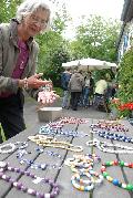 Alles spielte sich in der Dierdorfer Straße ab, in den Häusern 4, 9 und 12. Marie Schreyögg aus Straßenhaus hatte zum Beispiel ihren Energieschmuck mitgebracht: „Das hat nichts mit Esoterik zu tun“, sagt die jung gebliebene Dame. „Das ist Landwirtschaft, reine Vernunft“, versucht sie die Hoffnungen weckende Bezeichnung zu erklären. Die Arm- und Halsbänder werden aus so genannten „effektiven Mikroorganismen“ (EM) hergestellt und helfen bei Tieren – wenn diese die Bänder Tag und Nacht tragen – gegen Zecken.