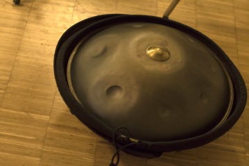 Musikalisch begleitet wird die Lesung durch Uwe Wagner auf dem Hang. Das Hang ist ein melodisch perkussives Musikinstrument, auf dem Uwe Wagner magische Klänge hervorruft, die Lesungen untermalend.