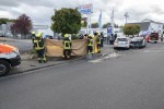 Das DRK war mit drei Rettungswagen und dem Notarzt vor Ort. Beim Eintreffen der Feuerwehr konnte kein Fahrzeugbrand festgestellt werden. Es gab jede Menge Schaulustige, die von den eingesetzten Polizeibeamten aufgefordert wurden, die Unfallstelle zu verlassen. Der Notarzt behandelte den 71-Jährigen auf dem Bürgersteig und die Feuerwehr schirmte mit Decken die Behandlung vor den Blicken der Schaulustigen ab. Daneben leistete die Feuerwehr Amtshilfe bei der Absperrung der Straße. Zwei Fahrzeuge erlitten Totalschaden und mussten vom Abschleppdienst abtransportiert werden.