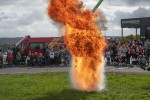 Oberraden. Morgens um 11 Uhr öffneten sich die Hallentore der Feuerwehr Oberraden-Straßenhaus für die Kinder und auch Erwachsenen. Es gab eine ganze Reihe von Mitmachaktionen. Am Spektakulärsten war die Vorführung einer Fettexplosion. Hier wurde erklärt, wie man sich verhält, wenn auf dem Herd ein Topf mit Fett in Brand gerät. Das Wichtigste: Ruhe bewahren! Den Deckel auf den Topf legen, damit sind die Flammen eingedämmt. Den Herd ausschalten und dann die Feuerwehr über den Notruf 112 anrufen. Keinesfalls den Deckel wieder anheben, dann sind nämlich die Flammen wieder da. Was man auf gar keinen Fall machen sollte, wurde ganz anschaulich demonstriert: Versuchen mit Wasser den Fettbrand zu löschen. Die Zuschauer sahen eine riesige Fettexplosion mit meterhohen Flammen.