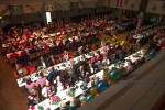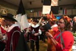 Der erste Höhepunkt des Abends war erreicht, das neue Prinzenpaar zog mit seinem großen Gefolge unter Beifallsstürmen in den Saal ein. Die Proklamationsurkunden wurden verlesen. OB Jan Einig veranlasste dies vor dem Vorlesen zu der Aussage: „In der Verwaltung muss alles seine Ordnung haben.“ Nach Übergabe der Insignien war der Jubel groß. Steffi stellte den Hofstaat vor: