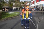 Die Jugendfeuerwehr stellte am Nachmittag mit einer Schauübung ihr Können unter Beweis. Simuliert wurde ein Flächenbrand, den es zu bekämpfen galt. Eine große Schar von Besuchern verfolgte das Geschehen. Mit Blaulicht und Martinshorn wurden die jugendlichen Einsatzkräfte vor das Feuerwehrhaus gefahren. Auf den vorgelagerten Verkehrsinseln wurde künstlicher Rauch erzeugt. Innerhalb kürzester Zeit waren die Jugendlichen einsatzbereit und es hieß „Wasser Marsch!“. Aus drei Rohren wurde der vermeintliche Brand bekämpft.