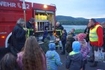 Besonders interessant wurde es dann, als ihnen, nach dem Weg entlang des Rheinufers, Stefan und Christian Erben vom Löschzug Rheinbrohl ein Feuerwehrauto vorstellten. Da gab es großes Erstaunen über die Ausstattung und was man damit im Notfall alles machen kann. Zu solchen Notfällen können Feuerwehrleute vom Retten einer Katze über das Auspumpen von Kellern bis hin zu kleinen und großen Bränden gerufen werden. Manches Kind verblüffte dabei auch schon mit seinem eigenen Wissen, sodass es ein munterer Dialog wurde, welcher letztlich darin endete, dass die Kinder über die Leiter auf das große Auto hinauf klettern konnten, was ein besonderes Erlebnis war.