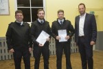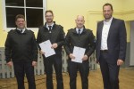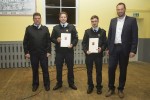 Das bronzene Feuerwehr-Ehrenzeichen für 15 Jahre Einsatzdienst erhielten Feuerwehrmann Sven Ramscheid, Feuerwehr Elgert, und Hauptfeuerwehrmann Johannes Jünger, Feuerwehr Marienhausen.