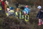 Am Dienstagmorgen, dem 15. November begaben sich 26 Kinder des HTZ, die im kommenden Jahr in die Schule kommen und 22 Kinder der kommunalen Kindertagesstätte mit ihren Betreuern zum Klimawald unterhalb der Grillhütte Mousemich. Dort ist schon einiges gepflanzt worden (wir berichteten), aber immer noch gibt es große freie Flächen.