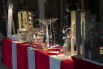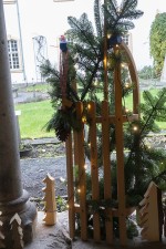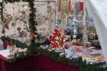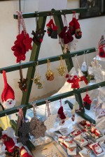 Im Gebäude konnte man immer wieder Besonderes entdecken, zum Beispiel Keramik aus dem Raku-Brand, italienisches Gebäck und Baumkuchen, gestrickte Weihnachtsbaumkugeln, Hundeperlen, riesige Klangschalen, Tannenbäumchen mit Fell anstelle von Nadeln, niedliche Knopftierchen und Glücksschweinchen mit Spitzenschärpe.