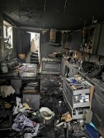 Waren schon die äußeren Eindrücke heftig, so wurden diese noch vom Anblick im Inneren übertroffen. Wohnzimmer, Küche, Bad, Toilette, zwei Schlafzimmer und der Flur sind durch die Flammeneinwirkung und die Löscharbeiten verbrannt, verrußt und verkohlt. Jedem Beobachter der Brandschäden wird sofort klar, dass dieses Haus in absehbarer Zukunft nicht bewohnbar sein wird.