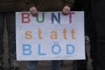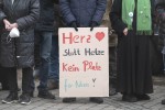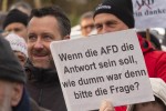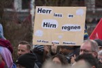 Viele Teilnehmer trugen Plakate, die die Ablehnung gegenüber der AfD zum Ausdruck brachten. So war zum Beispiel zu lesen: „Wer Hass säht, erzeugt Gewalt.“, „Herr, lass es Hirn regnen auf diese armen Menschen.“ oder „Auf die Straße gegen rechts.“