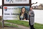Mindestens genauso stolz, wie Verena Schwager auf ihr Heimatort Erpel ist, ist auch Erpel stolz auf seine Mittelrhein-Weinkönigin. Ein Zeichen dafür sind die beiden neuen Ortseingangsschilder mit Foto der Hoheit, die alle Autofahrer, die nach oder durch Erpel fahren, willkommen heißen.