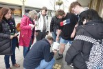 Die beiden Lehrpersonen waren mit einer Gruppe älterer Schüler zum Mahnmal der ehemaligen Synagoge gekommen, von wo sie sich diese in Kleingruppen auf den Weg in die Innenstadt gemacht haben, um dort die sogenannten "Stolpersteine" zu säubern. Diese waren vor den Häusern der ehemals dort wohnenden und später von den Nazis ermordeten Juden vom deutsch-israelischen Freundeskreis angebracht worden. Auch diese Aktion kann als deutliches Zeichen gegen Rassismus, Ausgrenzung und Diskriminierung gewertet werden. "Machen wir uns also gemeinsam stark für eine dialogische, solidarische und weltoffene Gesellschaft und mischen uns gegen Rassismus jeder Art unbedingt ein", betonten die jeweiligen Initiatoren vor dem Caritas-Haus sowie der Stolpersteine-Säuberung in der Innenstadt. Dabei brachten alle Beteiligten deutlich zum Ausdruck, dass sie sich auch künftig gegen jeglichen Rassismus einmischen und entsprechende klare Zeichen setzen wollen. (Jürgen Grab)