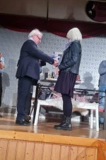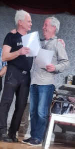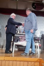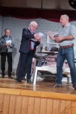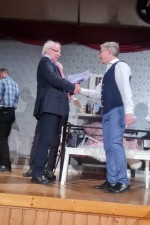 Doch damit nicht genug: Frank Reinhard hatte sich für seinen Freund und Mitbegründer sowie langjährigen 2. Vorsitzenden etwas ganz Besonderes einfallen lassen. So erhielt Werner Hoffmann unter großem Applaus aller Anwesenden vom Präsidenten des LV RLP Hans Schilling, für sein jahrzehntelanges, oftmals auch hinter den Kulissen agierendes, ehrenamtliches Engagement zum Wohle der Theatergruppe, die Verdienstnadel mit Urkunde vom Bund Deutscher Amateurtheater e.V. überreicht.