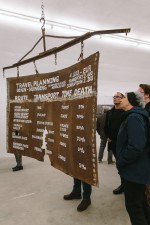 Die ähnlichen, aber doch auf ihre Art gänzlich unterschiedlichen Arbeiten wurden ergänzt durch ein Element in der Mitte des Bunkers, welches von der Decke hing. Hierauf war die Fluchtroute Afrika – Italien – Deutschland sowie zahlreiche damit einhergehende, schockierende Statistiken abgebildet, die manch einen der Besucher sprachlos zurückließen.