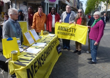 Der Infostand der Neuwieder Gruppe von Amnesty International auf dem Luisenplatz stand dieses Mal unter dem Motto "Klimaschutz ist Menschenschutz": Amnesty International fordert seit Langem eine klimagerechte, menschenrechtskonforme Politik. Amnesty-Gruppenmitglied Manfred Kirsch wies auf die besondere Bedeutung der Allgemeinen Erklärung der Menschenrechte auch für den Klimaschutz hin.