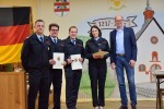 Das goldene Feuerwehr-Ehrenzeichen für 35-jährige aktive, pflichttreue Tätigkeit bei der Feuerwehr wurde von Landrat Achim Hallerbach und dem stellvertretenden BKI Jörg Alfter an Heinz-Josef-Siebenmorgen, Winfried Hartmann und Thomas Paffhausen verliehen. Das goldene Feuerwehr-Ehrenzeichen mit Lorbeerkranz für 45-jährige aktive, pflichttreue Tätigkeit bei der Feuerwehr wurde von Achim Hallerbach und Jörg Alfter an Helmut Stuntz vom Löschzug Bad Hönningen verliehen. Ein besonderes Jubiläum feierte Josef Scheidgen. Für 65 Jahre Mitgliedschaft in der Feuerwehr erhielt er ein Präsent.