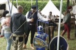 Auf dem Weg zur Burgruine hatte man die Möglichkeit, auf die Schnelle das Bogenschießen zu erlernen. Die Kinder schossen begeistert auf einen Pappbären und die Erwachsenen konnten über die Sprüche des Bogenmeisters lachen.