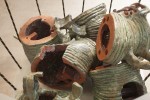 Nachdem er die Halle gesehen hatte, arbeitete Marcel Friedrich Weber mit Gips, Schalöl und Vaseline "feinstoffliche Wesen" aus, die das Material Gips in verschiedenen Strukturen und widersprüchlichen Eigenschaften wirken lassen. Es gibt tropfsteinähnliche Elemente, Durchsichten und filigrane Ränder, durch die die Wesen intransportabel sind, ebenso wie eine Rückseite mit Spuren der Holzschalung wie bei Sichtbeton.