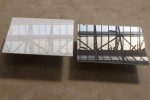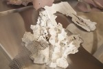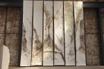 Vor Ort entstanden Modell-Landschaften mit Spuren von Böden, Bäumen und Schienen aus Alginat, schnellbindender Abdruckmasse aus dem Dentallabor, eingefärbt mit Pigmenten. Die Ränder der amorphen Platten wurden in den eigens gefertigten glänzenden Aluminium-Tischen darunter nachempfunden.