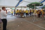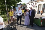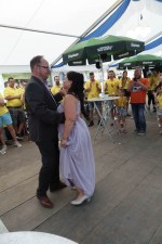 Gemeinsam mit den Musikern aus Herschbach ging es dann ins Festzelt zum Fassanstich. Bürgermeister Thomas Vis trieb mit einem Schlag den Hahn ins Fass und das Bier lief. Mit dem obligatorischen Kirmestanz von Sandra und Christian Holschbach war die Kirmes offiziell eröffnet. Das Kirmespaar wurde von der Kirmesgesellschaft überrascht, als es daheim abgeholt wurde. Thomas Vis gratulierte bei der Eröffnungsrede der Kirmesgesellschaft zum 70. Fest und verriet gleichzeitig ein persönliches Geheimnis. Er hatte genau vor 40 Jahren am Samstagabend seine Frau Susanne auf der Kirmes kennengelernt.
