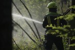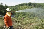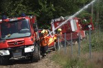 Große Brandbekämpfungsübung: Feuerwehren im unwegsamen Waldgelände gefordert