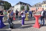 "Der asphaltierte Parkplatz verwandelt sich also in eine multifunktionale Fläche, in einen sogenannten Erlebnisraum und in einen Ort der Begegnung, ideal auch für Veranstaltungen und Außengastronomie", betonte Gastgeber OB Jan Einig, der seinen "Frühstücksgästen" gerne ergänzende Auskünfte über die weiteren Bauschritte gab. Einen besonders wichtigen Stellenwert bei diesem Ereignis nahm zweifellos das Frühstücksangebot der Famile Zander vom gegenüberliegenden Restaurant "L´apéritiv" ein, die an diesem freitäglichen Treffen auf dem ehemaligen Marktplatz ein reichhaltiges Angebot mit Kaffee, Säften und leckeren Häppchen reichten, was gerne von Gästen angenommen wurde. Sie alle, Gäste und Gastgeber, sind natürlich gespannt, auf welche Weise die weiteren Bauschritte verlaufen werden und wann die Einweihung dieses neuen attraktiven Areals stattfinden kann. (Jürgen Grab)