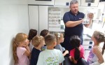 Nun ging es noch nach draußen vor die Kita, denn da parkte ein Rettungswagen der Malteser. Der Vertreter des Hilfsdienstes zeigte den Kindern den gesamten Rettungswagen von innen und außen. Jedes Kind durfte auf der Krankentrage Probe liegen, Geräte und Materialien im Wagen wurden gezeigt und ihr Einsatz erklärt. Zum Abschluss durfte jedes Kind als Beifahrer im Rettungswagen Platz nehmen und konnte auch dort erfahren, was wofür benötigt wird und vor allem, wo das Blaulicht eingeschaltet wird.