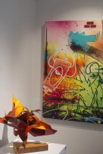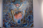 Schriftsteller und Zuhörer genossen das kongeniale Ambiente des Lesungsorts: In der Stadtgalerie Mennonitenkirche befindet sich zurzeit die Ausstellung "VANDALS - Töchter & Söhne der Streetart" mit sehr eindrucksvollen Werken der Guerilla-Kunst. Auch zwei Originale Banksys, des berühmtesten Vertreters der Szene, sind vorhanden, idealer Raum für einen Banksy-Krimi.