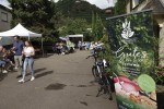Auch alkoholfreie Getränke gab es von der Kleinen Saftfabrik in Vielfalt, reiner Apfelsaft ebenso wie Apfelsaft-Mischungen mit Birne, Holunder und Süßkirsche. Angesichts des warmen Wetters waren Wasser und Saft Verkaufsschlager. Saftige Besonderheiten führte das Westerwälder Beerenland aus Hartenfels: Aronia (Apfelbeere), Saskatoon (kanadische Felsenbirne), Haskap (optisch wie eine längliche Heidelbeere), diese Beere schmeckt wie Himbeere plus Heidelbeere und besitzt wegen ihrer doppelten Beerenhaut einen höheren Pflanzenfarbstoff als andere Früchte. Beerenland bietet Beeren zum Selbstpflücken an, presst Säfte und stellt Gelees her.