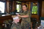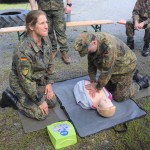 Oberstabsarzt Nikolai Hagendorf berichtete von seinem Einsatz mit der Bundeswehr in Mali im Sanitätsdienst. Verschiedene Übungen wurden durchgeführt, so zum Beispiel das Anlegen von Feuerstellen und das Darstellen von Feuerstellen durch die Gefreite der Reserve Kerstin Stricker-Dudenhofen. Hauptfeldwebel der Reserve Alexander Koch führte anschaulich Übungen beim Spurenlesen und bei der Kampfmittelerkennung durch.
