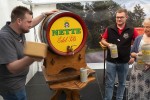 Den Fassanstich durften Jürgen und Stefan Mertgen vornehmen. Ihr in Straßenhaus ansässiges Familienunternehmen in der fünften Generation feiert in diesem Jahr seinen 125. Geburtstag. Drei souveräne Schläge, und das Bier floss nach Behebung einer technischen Störung in die Krüge. Damit war der Markt offiziell eröffnet.