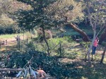 Der größte Arbeitsanfall ergab sich allerdings an der Dorfhütte Huf am Dorfweiher. Über Jahre hatte sich hier unkontrolliert starker Grünbewuchs verbreitet einschließlich zahlreicher Brombeeren. Zaun und Teilbereiche des Weihers waren stark überwuchert, Bäume und Sträucher mussten in Form geschnitten werden. Dies war allerdings bereits der zweite Einsatz an Hütte und Weiher in diesem Jahr! Bereits Ende April des Jahres hatten sich ebenfalls zahlreiche Helferinnen und Helfer aus dem kleinen Ort zusammengefunden um nahezu einen ganzen Samstag massiv dem Grünbewuchs beizukommen; es ergaben sich sowohl im Frühjahr als auch jetzt wieder ordentlichen Mengen an Grünabfall und Astschnitt. Die Arbeiten sind immer noch nicht abgeschlossen, voraussichtlich werden weitere Einsätze nötig sein. Die Weiheranlage ist seit Jahren in einem schlechten Zustand. Die Dorfgemeinschaft Huf versucht zusammen mit der Ortsgemeinde als Eigentümerin eine zeitnahe Lösung zu finden.