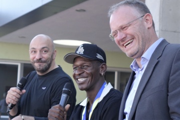Der Lehrer und Volleyball-Hallensprecher Marco Cicoria hat die Aufgabe wahrgenommen, den Basketball-Star über die vergangenen Wochen bei den WM im fernen Asien zu befragen, wobei auch die vielen heimischen Nachwuchs-Basketballer die Möglichkeit in Anspruch nahmen, sich bei dem nunmehr bei den Baskets von Bayern München spielenden Bonga ihre Autogrammkarte abzuholen, wobei Issac gerne die Möglichkeit wahrnahm, mehr von sich und seiner Karriere zu erzählen.