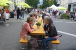 Beim letzten "Schlemmertreff" der Saison auf der verkehrsberuhigten Pfarrstraße vor dem historischen Rathaus herrschten zwar keine besonders sommerlichen Temperaturen, doch es reichte immer noch für eine angenehme Atmosphäre, um etliche gut gelaunte Menschen für ein kommunikatives Beisammensein auf die Holzbänke vor dem altehrwürdigen Rathaus zu locken.