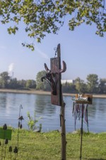 Nahe am Wasser bildeten Günter Bruchofs Windspiele und Mosaikobjekte ein Kontrastspiel mit den Bäumen.