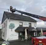 In der örtlichen Gaststätte lösten sich aufgrund des starken Windes Teile einer Schornsteinverkleidung und fielen zu Boden. Weitere lose Teile wurden mit Unterstützung der Drehleiter der Einheit Rengsdorf abgetragen und sicher zu Boden befördert.