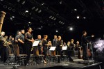 Vor der Pause erfreuten die Musiker die Gäste mit „Flight of the Piasa“ von Robert Sheldon. Der 1954 geborene Komponist erhielt zahlreiche Auszeichnungen. Darunter auch den Stanbury Award. Die Entdeckung der Piasa geht auf das Jahr 1673 zurück, als Jacques Marquette während seiner Reise den Mississippi erstmals sah. Zusätzlich zu den rund 60 Musikern hatte der Projektchor mit rund 40 Sängerinnen und Sängern Aufstellung genommen.