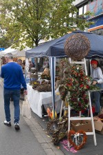 Die Marktbeschicker hatten nicht nur ihre Stände liebevoll dekoriert, Dekoratives bildete den Schwerpunkt des Marktes, teils herbstlich, teils schon weihnachtlich ausgerichtet. Haus- und Gartendekorationsartikel aus Holz, Schiefer, Keramik, Eisen, Blech, Edelstahl, Trockenpflanzen, Rebenwurzeln, Glas, Draht, Leder und Bast boten für jeden Geschmack etwas Schönes.