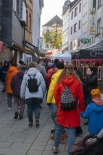 Wäller sind regenfest und hart im Nehmen, daher lassen sie sich ihren liebgewonnenen Katharinenmarkt nicht vermiesen. Gegen Regenschauer ab der Mittagszeit helfen schließlich Schirme, Capes und wärmende Schnäpse. Das ist in Hachenburg alles vorhanden. htv