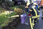 Die kurz darauf eintreffende Feuerwehr brachte noch rauchende Gegenstände nach draußen und leitete Lüftungsmaßnahmen ein. Die Deckenverkleidung des Badezimmers aus Holz musste teilweise entfernt werden, damit Glutnester in der Decke ausgeschlossen werden konnten. Die abschließende Kontrolle mittels Wärmebildkamera zeigte keine erhöhten Werte an.